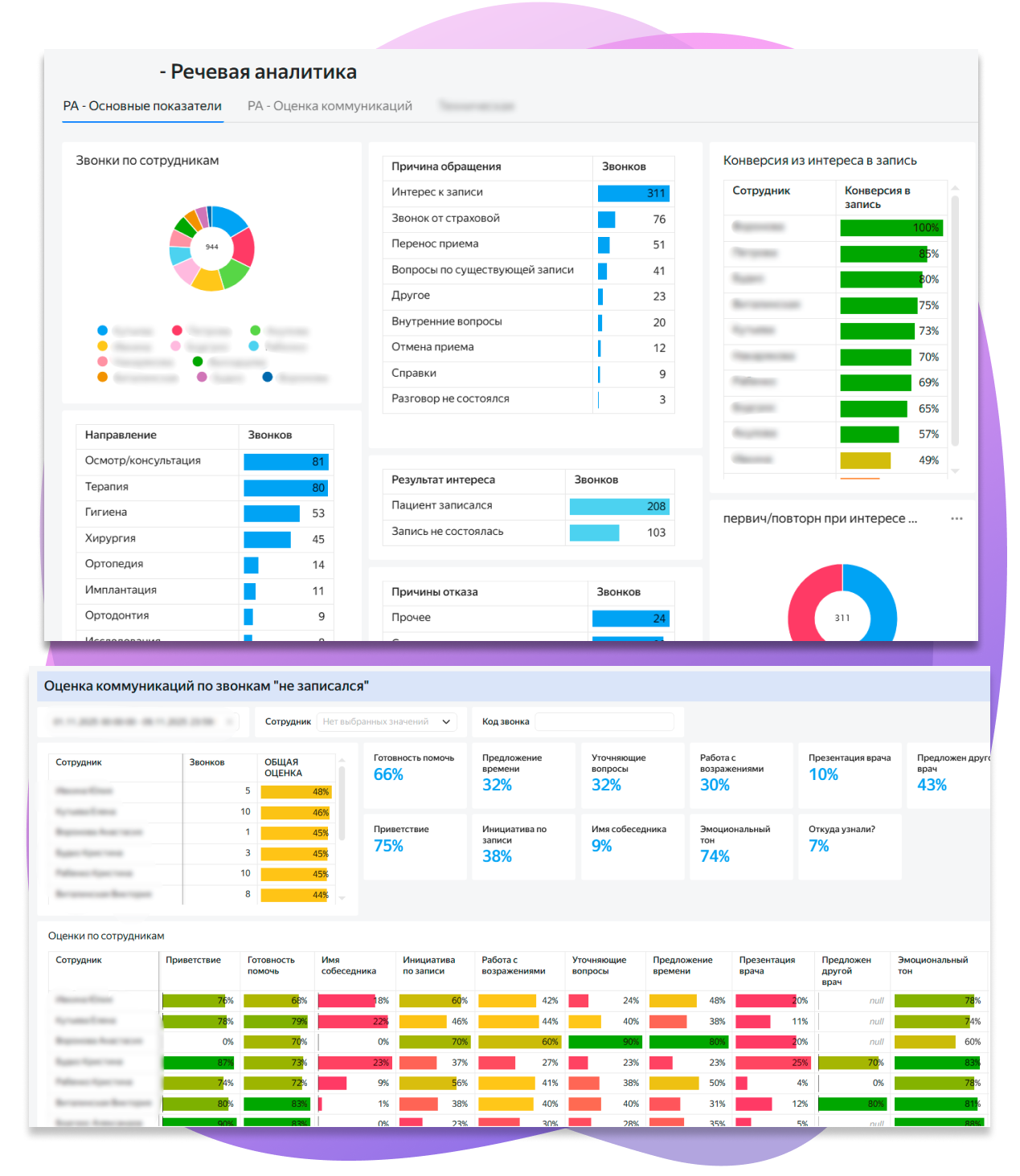 Умная система речевой ИИ-аналитики автоматически анализирует, оценивает и берет под контроль все коммуникации с пациентами.